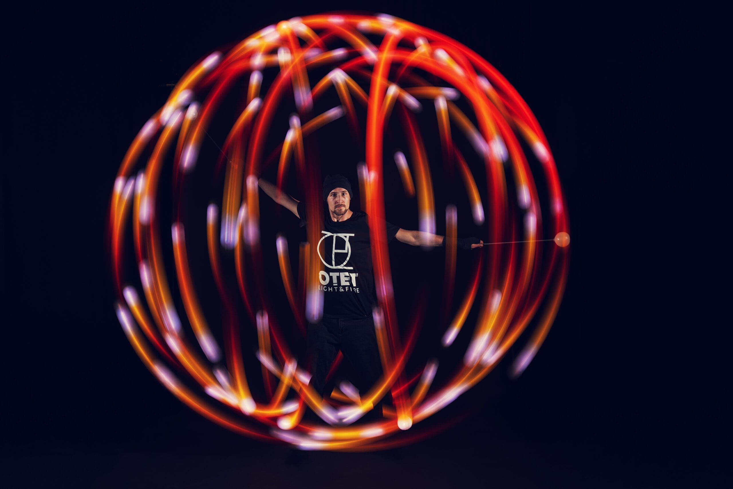 I combine Flow Arts technique with music, humor, and direct audience interaction.